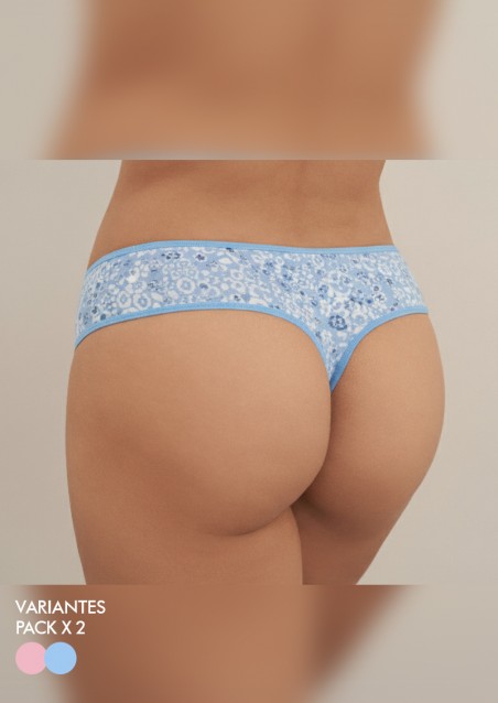 Pack x2 culotte less de algodón y lycra estampado.